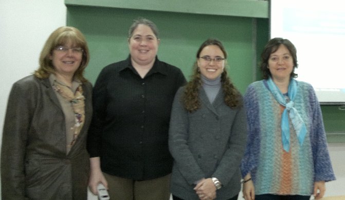 Fotos del día de la defensa con las directoras de la tesis y el tribunal, integrado por las profesoras: Mg. Lidia López y Dra. Alejandra Cechich.